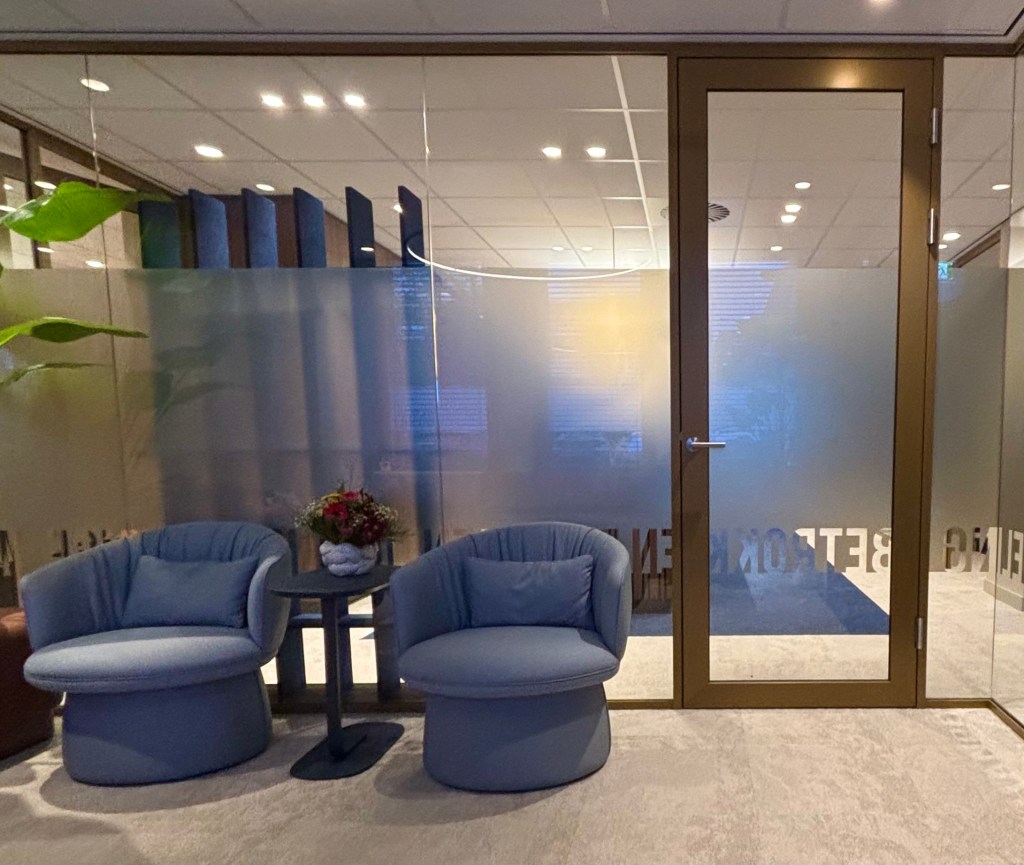Deze fantastische notaris (www.stevensidema.nl) had recentelijk het kantoor verbouwd. Op de binnenramen staat de eed die een notaris aflegt. Het woord ‘betrokken’ – uit de zin Ik zweer dat ik de belangen van alle bij de rechtshandeling betrokken partijen naar beste weten en kunnen zal behartigen stond toevallig op de deur van de wachtkamer.