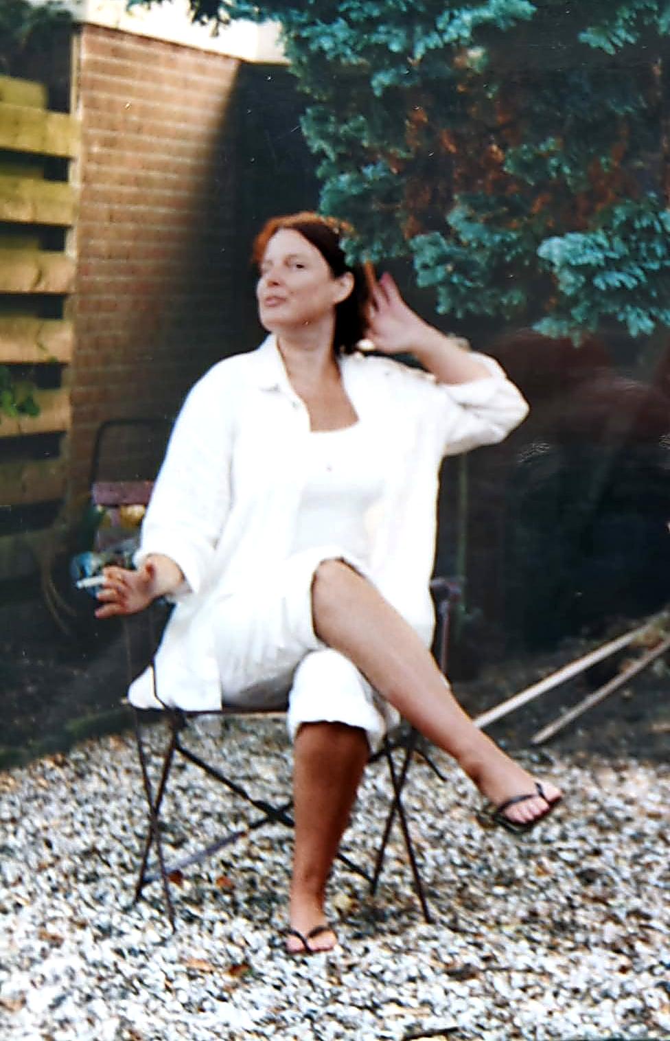 Een paar dagen later kreeg ik deze oude foto van een vriendin van me. Begin deze eeuw zat ik te paffen op een feestje. Ik lijk hier op de moeder uit mijn droom.